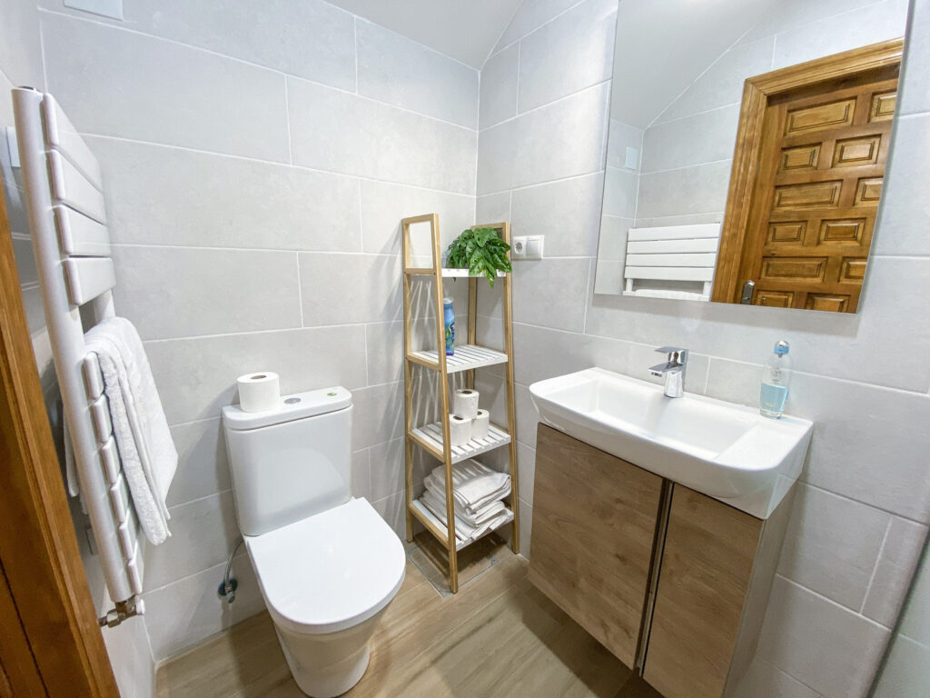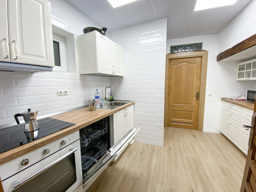 Dispone de dos baños (uno en cada planta), con ducha y otro con bañera, y dos cocinas totalmente equipadas, perfectas para disfrutar de cualquier comida en buena compañía.